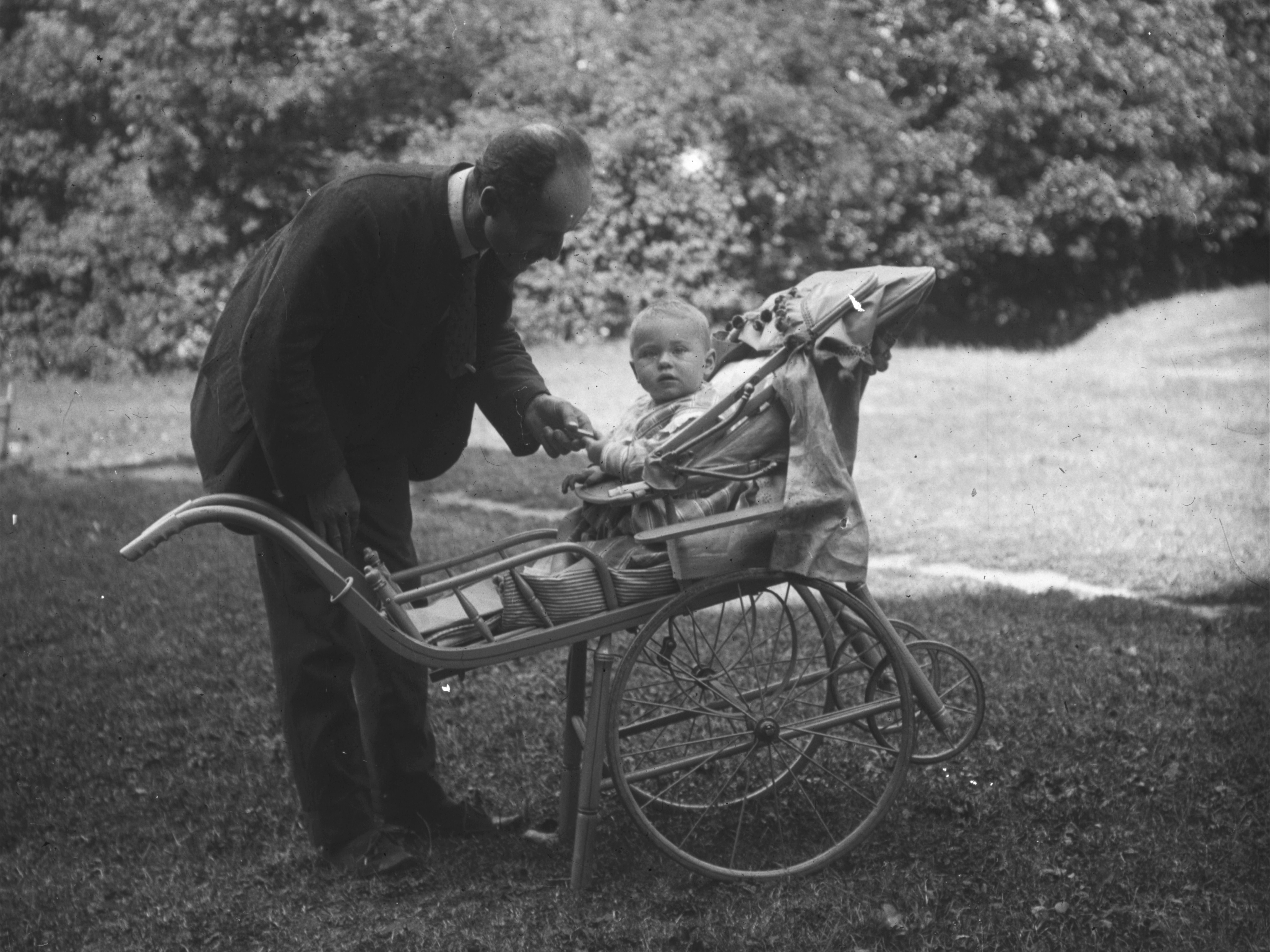 Ermüdet von den aufregenden Tagesausflügen erholte sich Klein Anton im Garten und ließ sich vom Kindermädchen verwöhnen. Auch der stolze Papa war ganz begeistert von dem praktischen und modernen Kinderwagen.